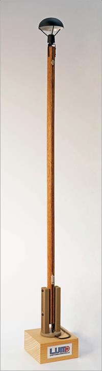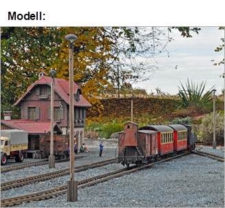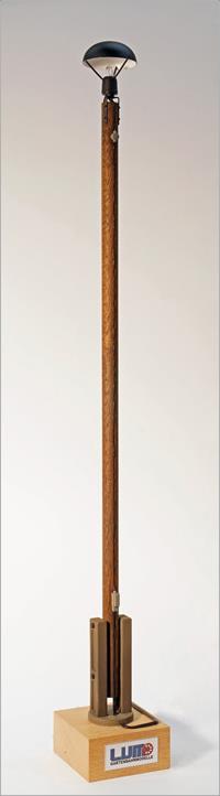 Im Modell ist die typische Ausführung nachgebildet, wie man sie auf den Bahnhöfen der Harzer Schmalspurbahnen (HSB) vorfindet, mit Holzmast, Dreipunktbefestigung des Lampensockels, Mastschuhe aus Beton, Anschlusskasten unten und Anschlussdose oben.