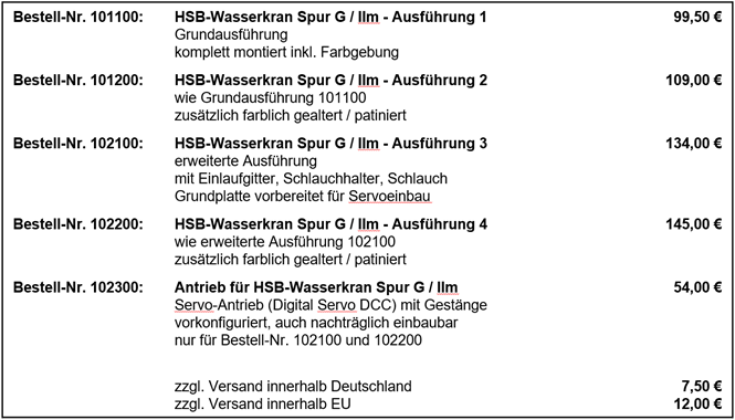 - exaktes Modell des HSB-Wasserkrans im Maßstab 1:22,5 für Spur G / IIm